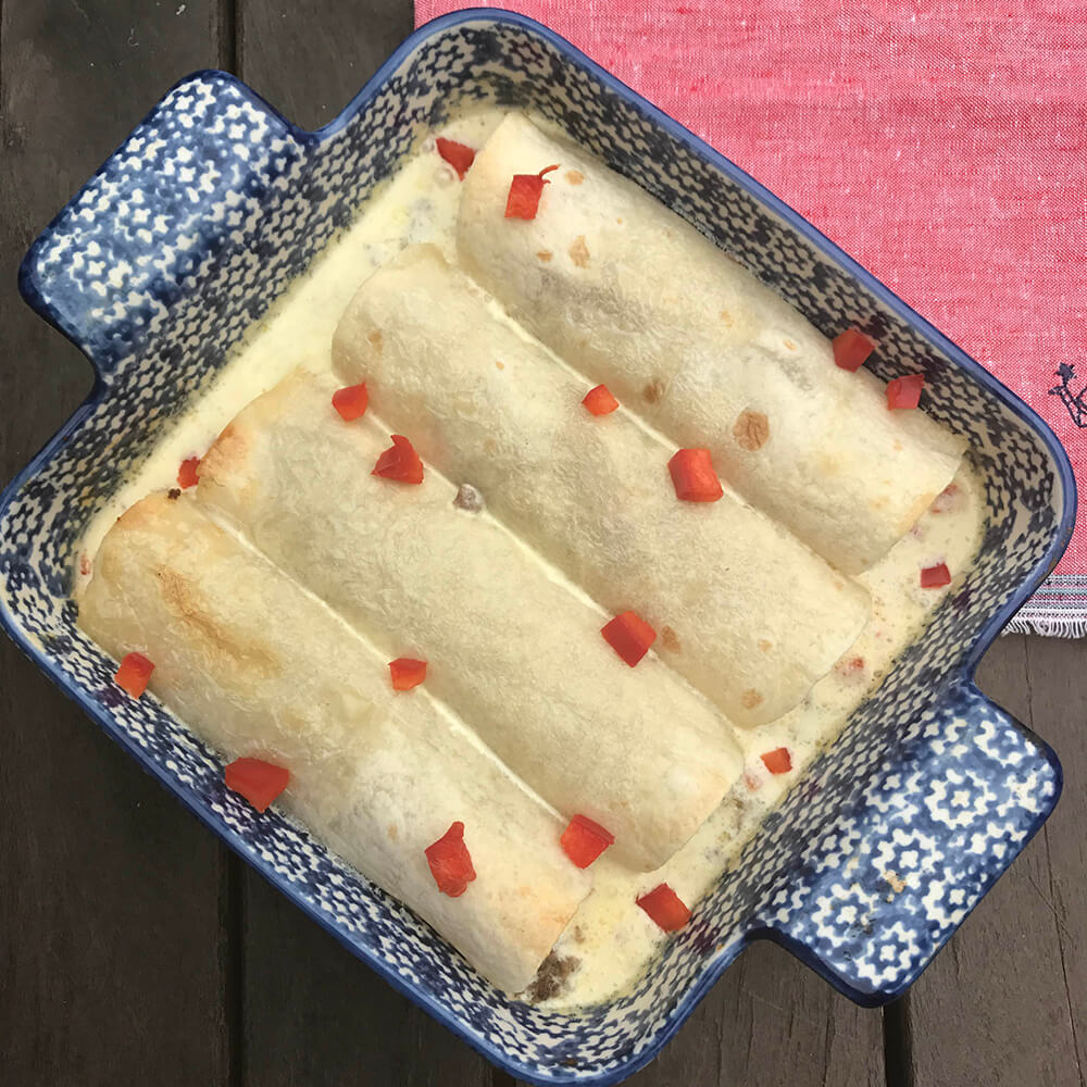 Rellenar abundantemente las Rapiditas, enrollar y disponer en una fuente para horno.