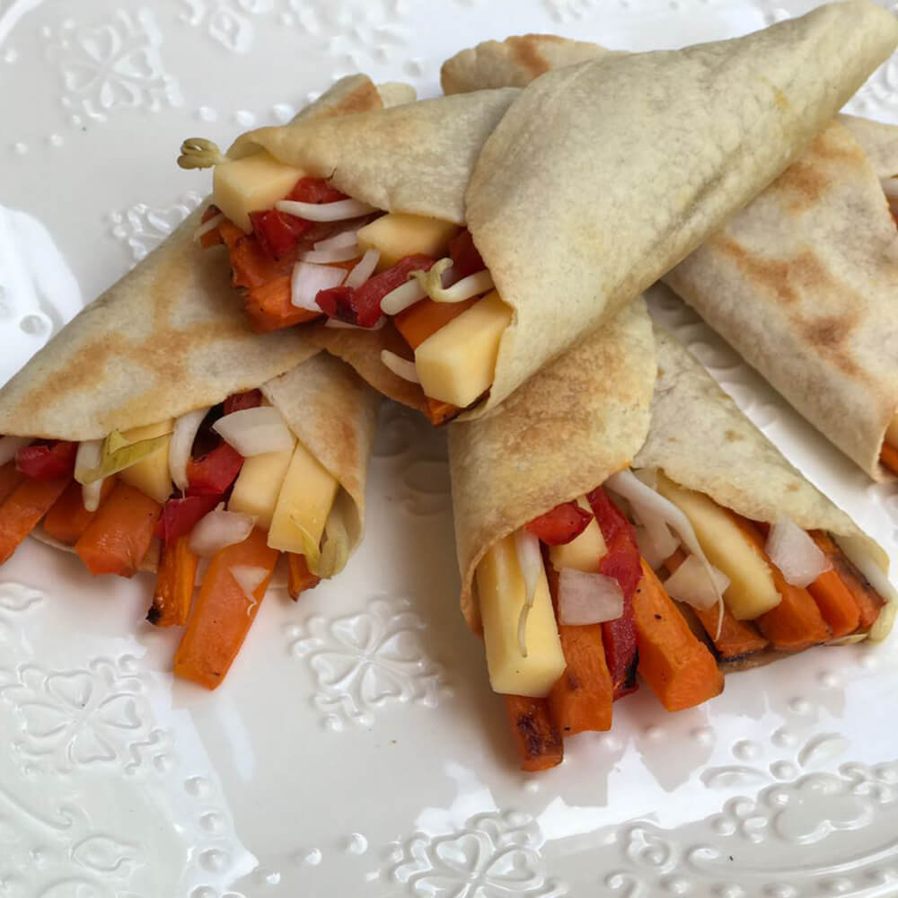 Dorar en una sartén vuelta y vuelta las Rapiditas, rellenar enseguida con la mezcla de vegetales y formar un conito.