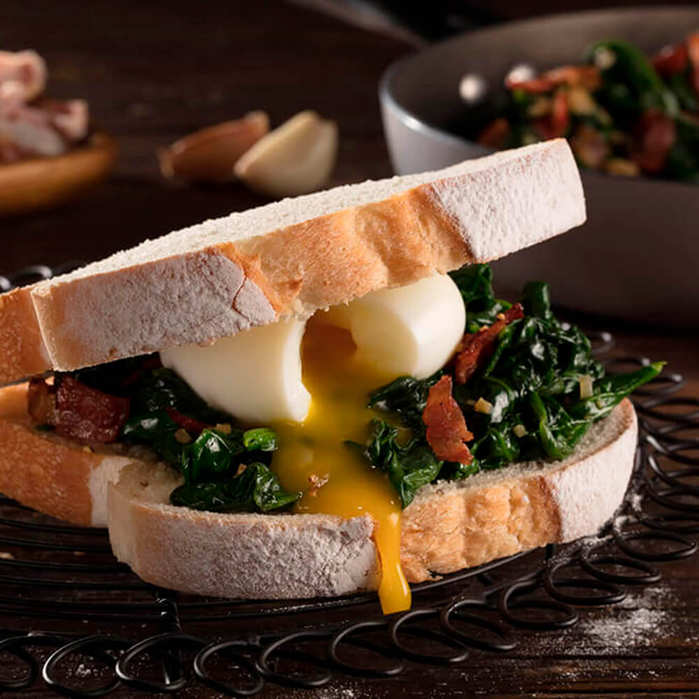Sobre una rebanada de Pan Artesano agregar la preparación y un huevo previamente hervido durante 4 min.